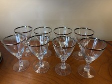 Platinum Rim MCM 5 band wine Crystal Goblets (8)