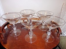 VINTAGE 5 CRYSTAL CHAMPAGNE WINE GLASTONBURY LOTUS BAR GLASS PLATINUM RING
