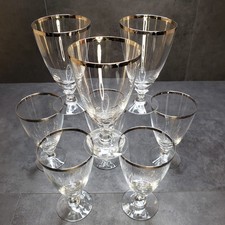 Set of 7 Vintage French Crystal Glass platinum ring Water Goblet Dorothy Thorpe
