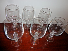 VINTAGE 6 BOHEMIA CLAUDIA LEAD CRYSTAL WINE GLASS FACETED BALL SEM PLATINUM RING