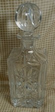 Vtg. Crystal Whiskey Charleston Square Decanter With Stopper~Barware 10"x 3 5"