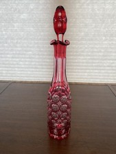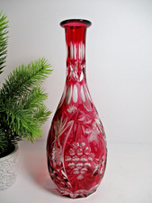 Ruby Red Bohemian Cut to Clear Crystal Decanter Traube Grapes Lausitzer German