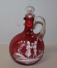 Antique Victorian Mary Gregory Cranberry Art Glass Decanter