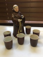 Antique Monk Wine Decanter With 6 Cups 1940’s