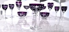 Antique Bohemian Spectacular Cranberry To Clear Cut Crystal Set 15 Pieces