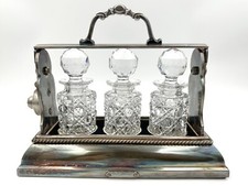 Antique English Tantalus By Betjemann, Cut Glass Decanters & Silverplate Holder