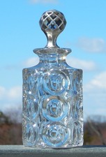 Vintage Antique 8" Crystal Thumbprint Decanter Sterling Overlay Faceted Stopper