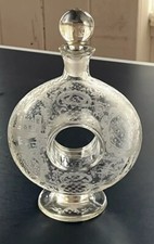ANTIQUE CLEAR ETCHED GLASS DONUT SHAPED DECANTER W/ STOPPER POSSIBLY BACCARAT?