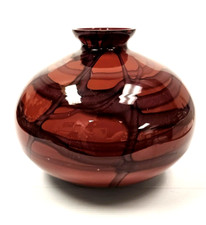 SPECTACULAR 9" Antique Bohemian Art Deco Kralik Red & Black Art Glass Ball Vase