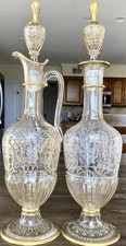 Pair Antique French Empire Saint Louis Crystal Ewer & Decanter Set 15”