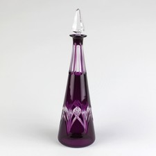 Cristal de Nancy Signed Amethyst Cut to Clear Liqueur Decanter, Antique 10.5"