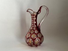 Antique Harrach Enameled Floral Cranberry Glass Inverted Thumbprint Water Carafe