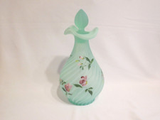 FENTON SEA MIST GREEN SPIRAL FLORAL HAND PAINTED DECANTER & STOPPER SIGNED