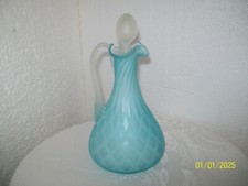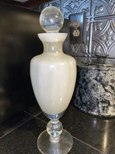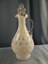 White Opalescent Glass Decanter with Stopper 11 In Tall Vintage Decanter