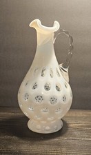 Fenton Hobnail Milkglass Decanter W/ Quilted Handle & Matching Stopper 12"