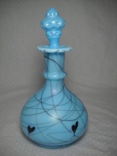 Fenton Blue Hanging Hearts Decanter w/ Stopper 8 3/4" Tall Robert Barber 1975