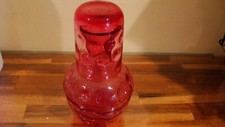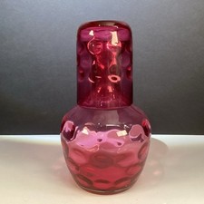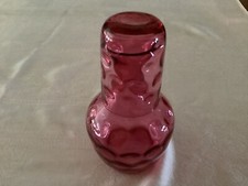 Fenton cranberry coin Dot optic Glass bedside Decanter w/ Glass Tumble Up