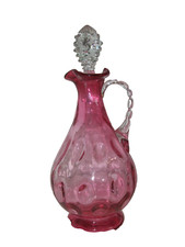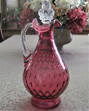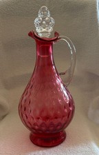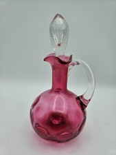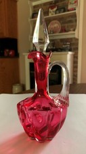 Vintage Cranberry Cruet / Decanter, Fenton? 5 1/2" Tall Inverted Baby Thumbrint