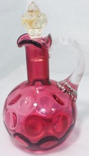 Vintage Fenton Cranberry Coin Dot Wine Pitcher Decanter Fancy Crystal Top GRAND!