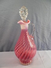 Fenton Cranberry Glass Cruet Spiral Swirl w/ Stopper Excellent
