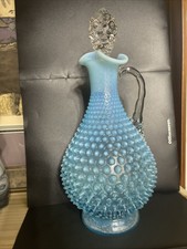 Fenton Hobnail Blue Opalescent Handled Decanter