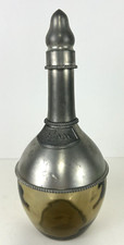 Vintage Glass and Pewter ? Tin Cognac Decanter Brown Grey 11"T Whiskey Stopper