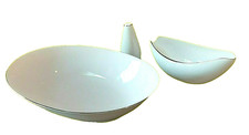 (3) serving pieces Vintage Fine China-Platinum Ring 60s Gravy boat bowl salt MCM