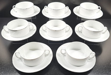 8 Thomas Platinum Band Cream Soup Bowl Saucer Set Vintage White Dish Germany Lot