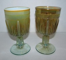 Pair of Fenton for Levay Aqua Opalescent Cactus Art Glass Goblets 1248
