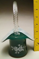 Vintage Fenton Art Glass Hat Basket Green Overlay Satin Finish #1974 made 1950-1