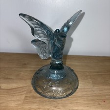 Vintage Fenton Art Glass Butterfly Satin Baby Blue Ring Holder Statue