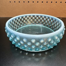 Fenton Art Glass Blue Opalescent Hobnail Candy Vanity Jar No Lid