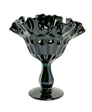 FENTON Black Art Glass Thumbprint Ruffle Crimped Candy Dish Pedestal ( H 6") VTG