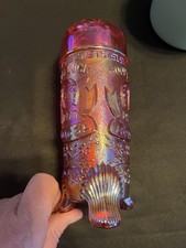 Vintage Genuine Fenton Ruby Red Carnival Glass Vase, Beautiful!