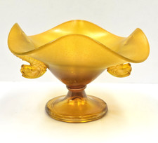 UV Glow VTG Fenton Tangerine Stretch Glass Pedestal Compote Bowl Dolphin Koi