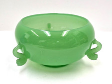 Vintage Fenton Art Glass Jadeite Green Chinese Dolphin Bowl 3 Handle Koi Fish