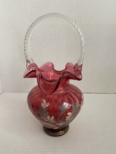 Fenton Cranberry Legacy Basket Hand Painted E. Thomas Bill Fenton Collection