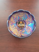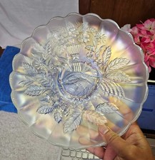 Old PEACOCK & Urn Carnival Glass Candy Dish Fluted