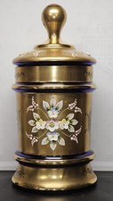 WOW Handmade Bohemian Cobalt Blue 24k Heavy Gilt Gold Crystal Covered Lidded Urn