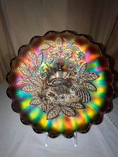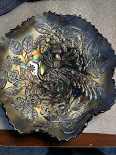 Fenton Peacock And urn Carnival Glass 13" Salad bowl