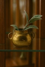 VTG Solid Brass Mini Urn Pot w/ Double Handles Small Vase Rustic Boho Decor Gold