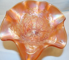 Northwood Carnival Glass Peacock & Urn Master Ice Cream Pastel Marigold - Super