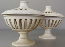 Antique Wedgwood Creamware Pair Pierced Lidded Compotes Urns c1900 Rare