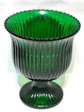 VINTAGE E.O. BRODY CO EMERALD GREEN 6 5" RIBBED FOOTED GLASS PEDESTAL VASE URN