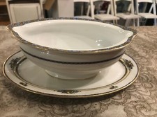 Vintage Royal Bayreuth Gravy Bowl W/ Underplate Blue Gold Floral Urn Flowers