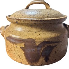 Art Handmade Clay Pot with Lid Signed K. Trip Inside Glazed Urn Container Handle