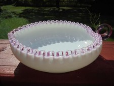 Vintage Fenton Scalloped Crimped Ruffled Bowl - Pink & White 10.5" x 7" x 4"