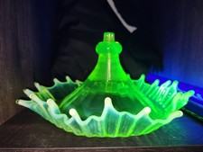 RARE Fenton Topaz Opal Uranium Glass Epergne Bowl – Made for L.G. Wright
