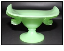 VINTAGE FENTON ART GLASS No. 1533 - DOLPHIN HANDLED COMPOTE - JADE OPAQUE GREEN