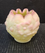 Fenton “Wild Rose” Burmese Uranium Glass Ruffled Rim Rose Bowl 4 5 Inches Tall